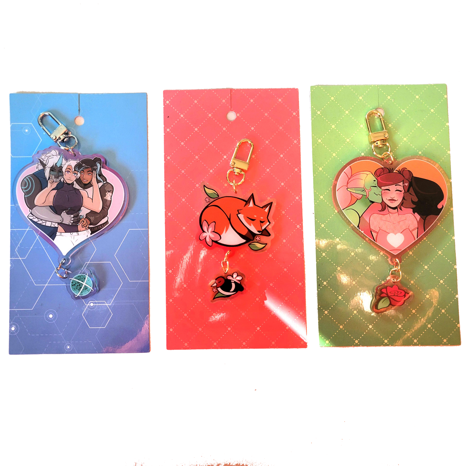Acrylic heart charms with a smaller cute connected charm to go with it!